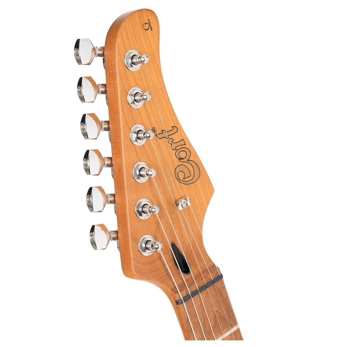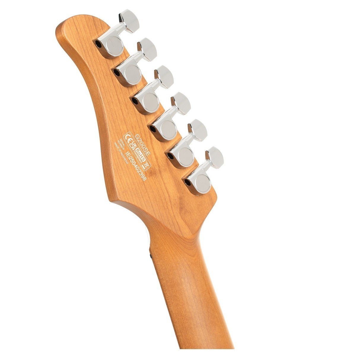 The G200SE has a lightweight poplar body which gives a bright and snappy tone. The body is contoured for player comfort and won’t give you a back ache after long practice sessions! The roasted maple neck looks gorgeous and is finished in a silky smooth satin finish which allows players to slide around without friction. The vintage style 9.45″ fretboard radius feels superb for smooth bends and the classy black dot inlays mean you’ll never get lost mid solo. The vintage style 6-point floating tremolo feels smooth and snaps back to position quickly when released, offering excellent tuning stability and great player response. We also love the four bolt neck joint with inlaid bolts and a smoothly curved joint which gives you very easy access to the top frets. All in all this guitar feels premium and is incredibly fun to play. Tonally, the G200SE is no slouch!